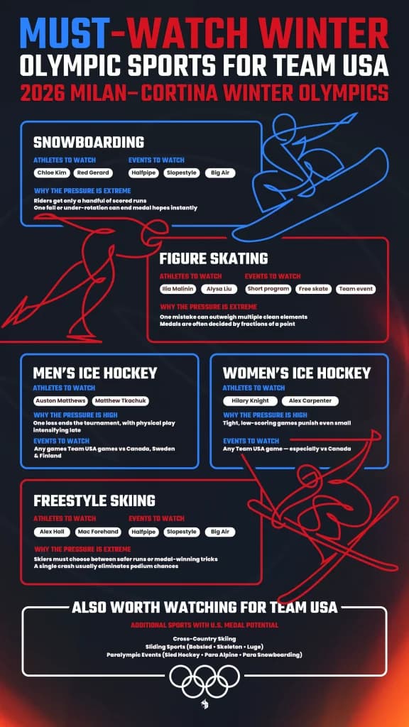 At the 2022 Winter Games in Beijing four years ago, Team USA put on an impressive performance. American athletes earned medals in figure skating, snowboarding, freestyle skiing, bobsleigh, hockey, and other events, garnering 25 medals in all (8 gold, 9 silver, and 7 bronze). This put the USA in third behind Germany (27) and Norway (37), who racked up medals in biathlon, cross-country skiing, and Nordic combined events. Now, as the 2026 Games approach, many fans are wondering what to expect from the Americans this time around, and which athletes to watch.