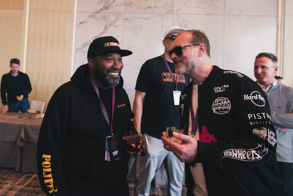 Merch, music, and bottles were poppin’ while some of the prestigious Gumball 3000 drivers began rolling in.